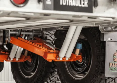 The airbag suspension system comes standard on the TH610 model, and is self levelling. Due to the load that is put on these rigs, we wouldn’t fit it with anything else. This gives you the ability to automatically level your Toy Hauler once you get to camp, using controls on the base camp module.